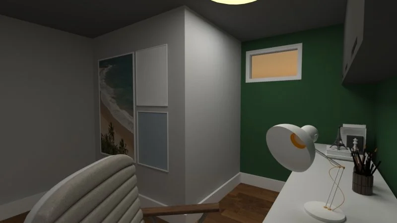 This interior design project transformed the basement into a multifunctional space, where a cozy living area, a practical office, and an elegant small bar coexist. The strong color palette, with shades of green and gray, along with the striking presence of wood, created an environment that invites you to stay and enjoy. The laundry room, integrated into the living room, was designed with both functionality and style in mind, maintaining the visual harmony of the area. Every detail was thought out to offer comfort and practicality, making the basement an ideal retreat for daily life, where you can relax, work, and socialize all in one place.